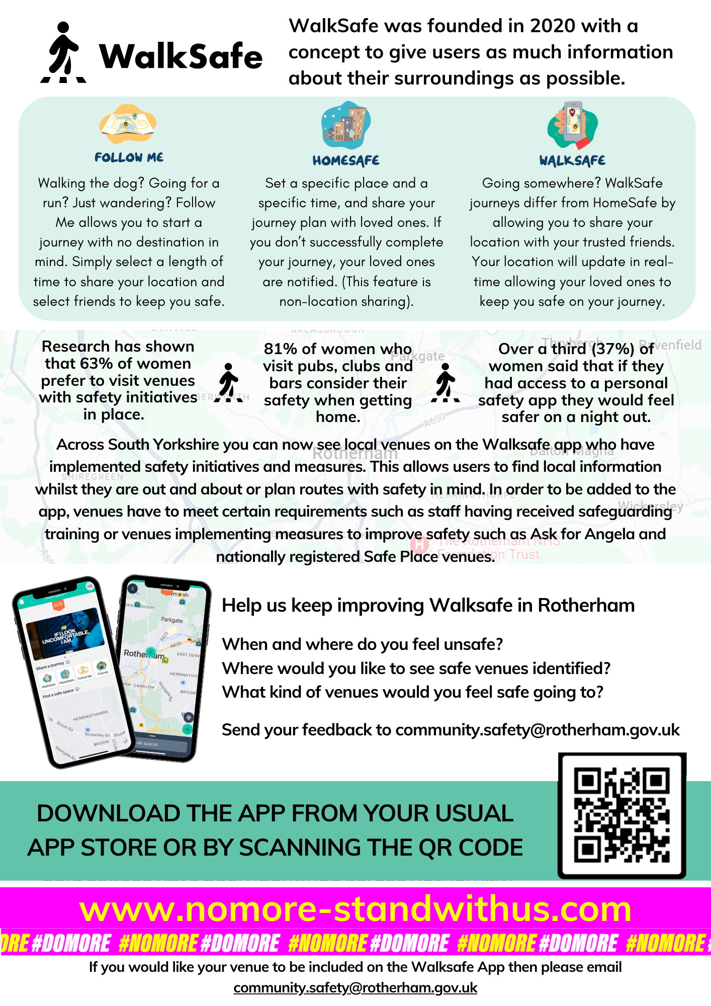 A collection of resources for Walksafe Rotherham, including posters, a guide, and presentation.